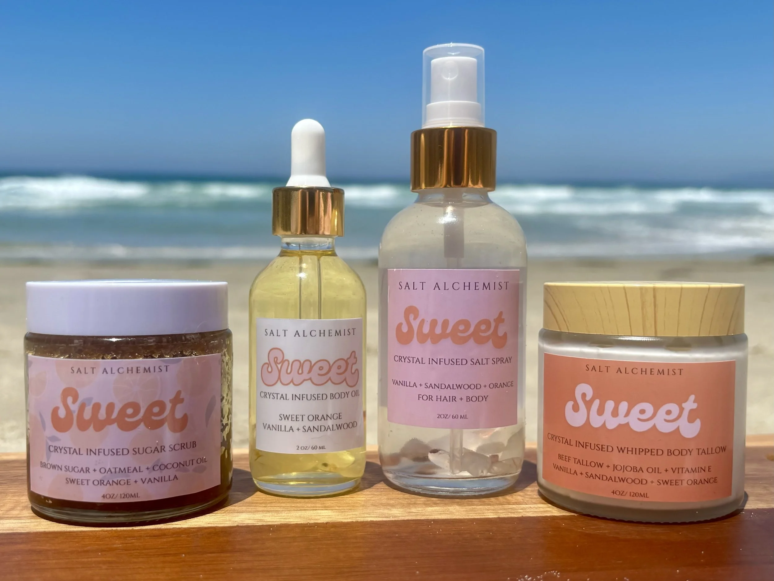 Body & Facial Care Made with Intention Blended by hand, infused with crystals, and designed to support your glow from the inside out Categories: All Stickers Personal Care Facial Tallows Foot Care Body Oils Salt Sprays Bundles & Kits All Stickers Personal Care Pink Pineapple Organic Sugar Scrub with Coconut Oil $12.00 Hey Boo... Organic Sugar Scrub with Coconut Oil $12.00 Magnetic Body Oil Sale Price: $12.00 Original Price: $18.00 Sale Sunkiss Glow Oils $18.00 Delulu Body Oil Sale Price: $12.00 Original Price: $18.00 Sale Lucky Body Oil Sale Price: $12.00 Original Price: $18.00 Sale Alchemy Body Oil Sale Price: $12.00 Original Price: $18.00 Sale Venusian Energy Body Oil Sale Price: $12.00 Original Price: $18.00 Sale Sugar & Spice Pheromone Body Oil Sale Price: $12.00 Original Price: $22.00 Sale Erase Cleansing Oil Sale Price: $12.00 Original Price: $14.00 Sale Blue Moon Whipped Tallow from $18.00 Sale Delulu Whipped Body Tallow from $16.00 Velvet Unscented Whipped Body Tallow from $14.00 Velvet- Organic Cane Sugar Scrub from $8.00 Bloom Brown Sugar Scrub from $8.00 Breeze Cane Sugar Scrub from $10.00 Delulu Duo- Body Oil & Whipped Body Tallow Set $26.00 Grounding Foot Spray $14.00 Sweet Brown Sugar Scrub from $8.00 Golden Hour Face Tallow $28.00 Golden Hour Facial Glow Serum $24.00 Golden Hour Face Duo $54.00 The Strand Salt Spray $14.00 Grounding Foot Tallow $18.00 Grounding Foot Oil $14.00 Grounding Ritual Set $40.00 Oasis Camel Balm $32.00 Bloom Whipped Body Tallow from $16.00 Gift Card from $25.00
